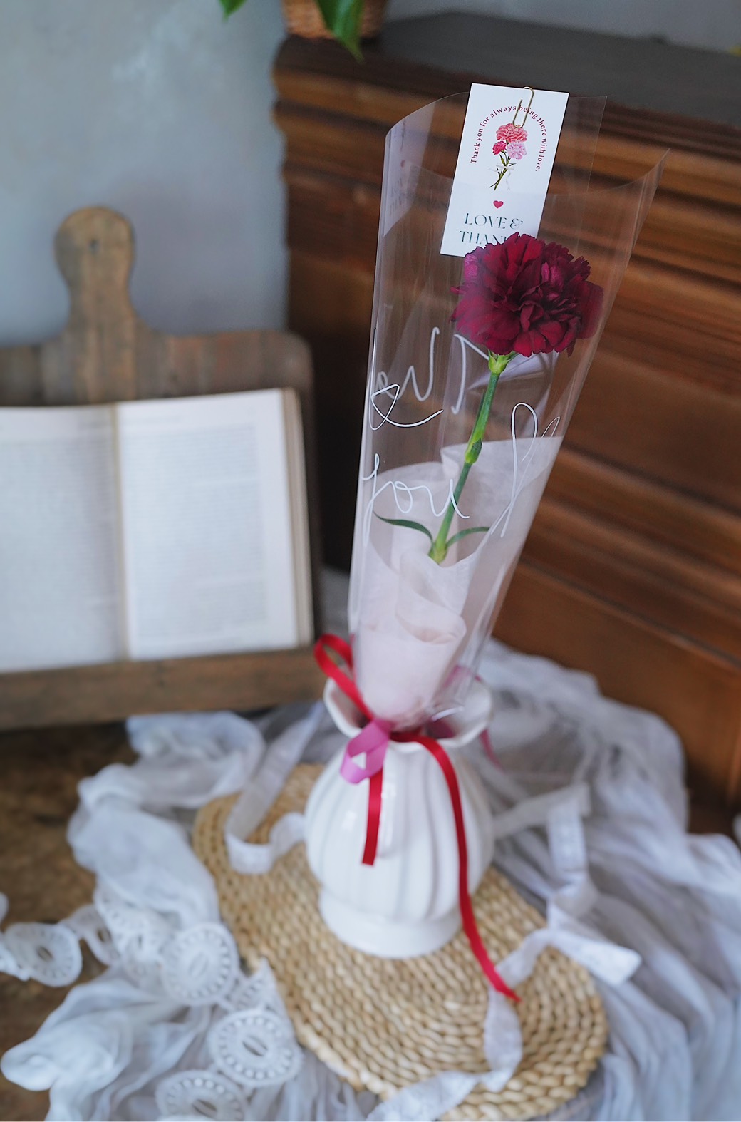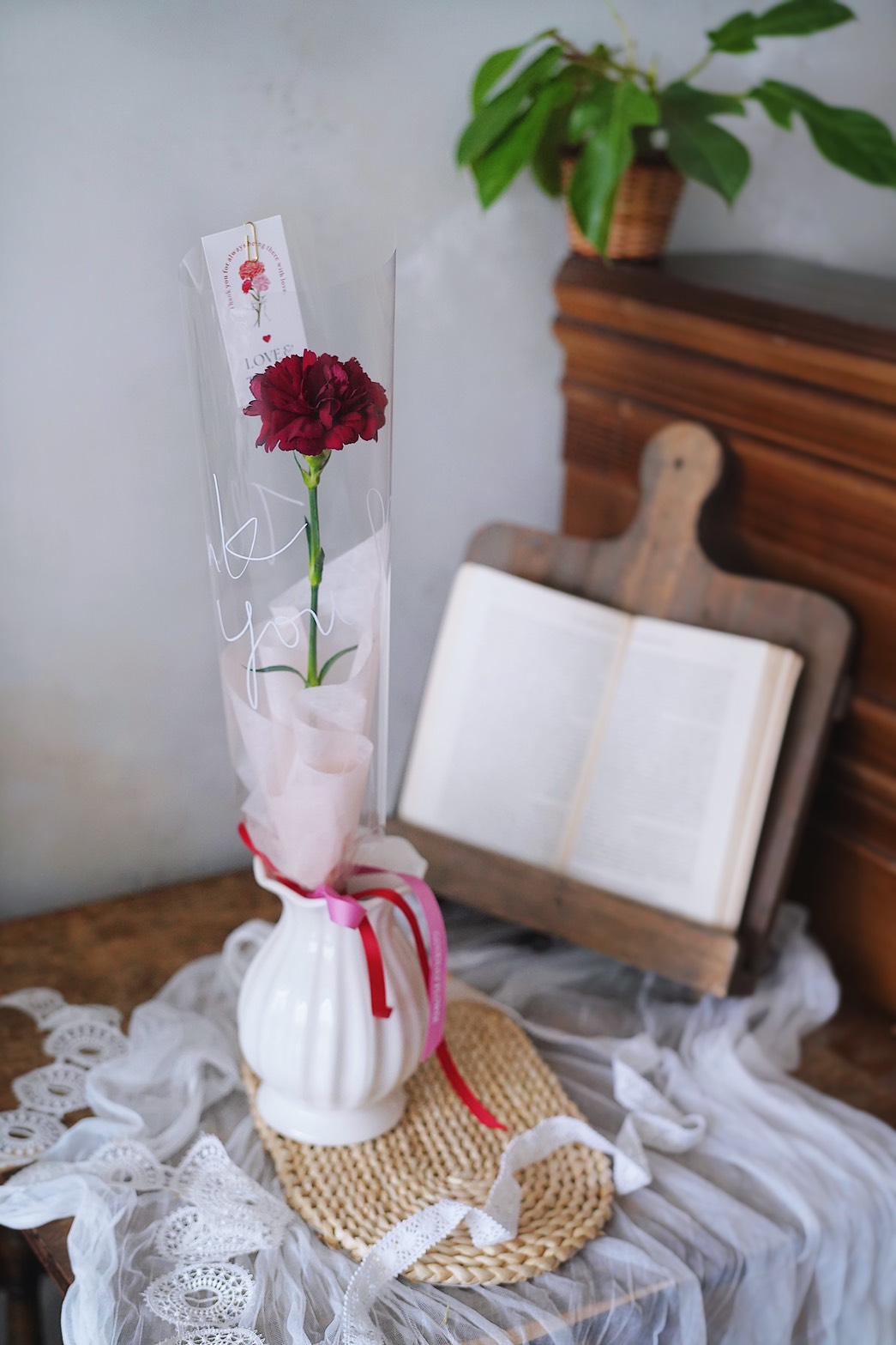 馨心|Thank you單朵康乃馨鮮花束 - 優雅粉 / 炙愛紅 / 蕾絲紅 / 甜橙橘