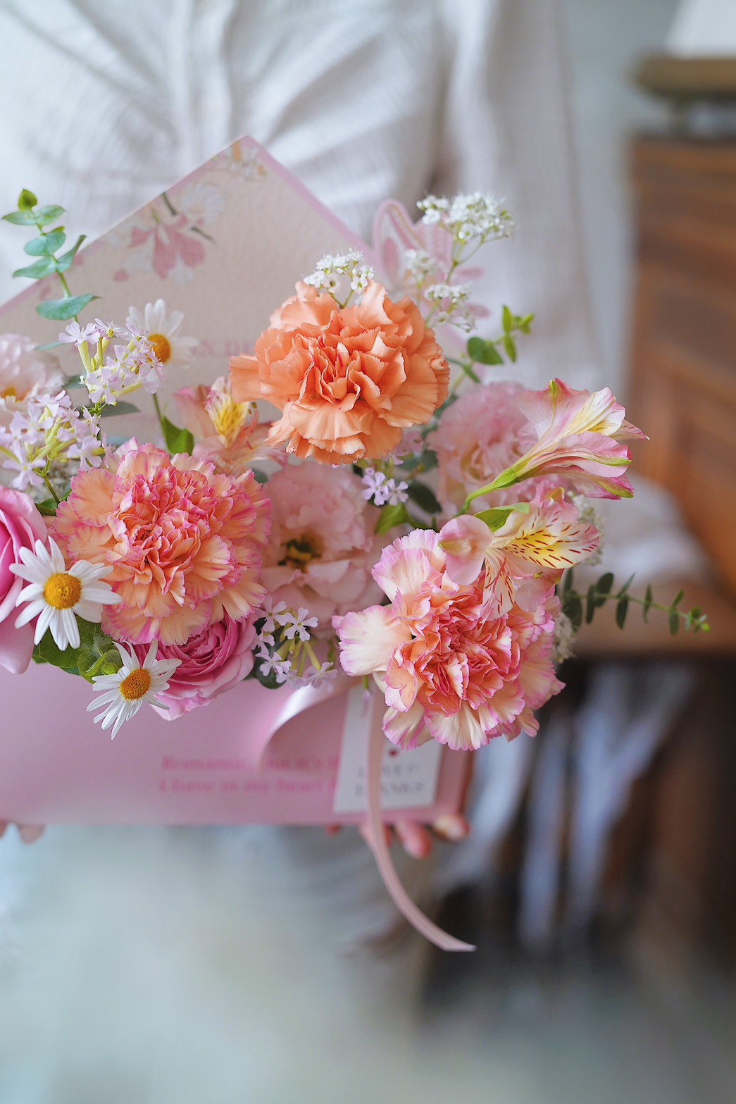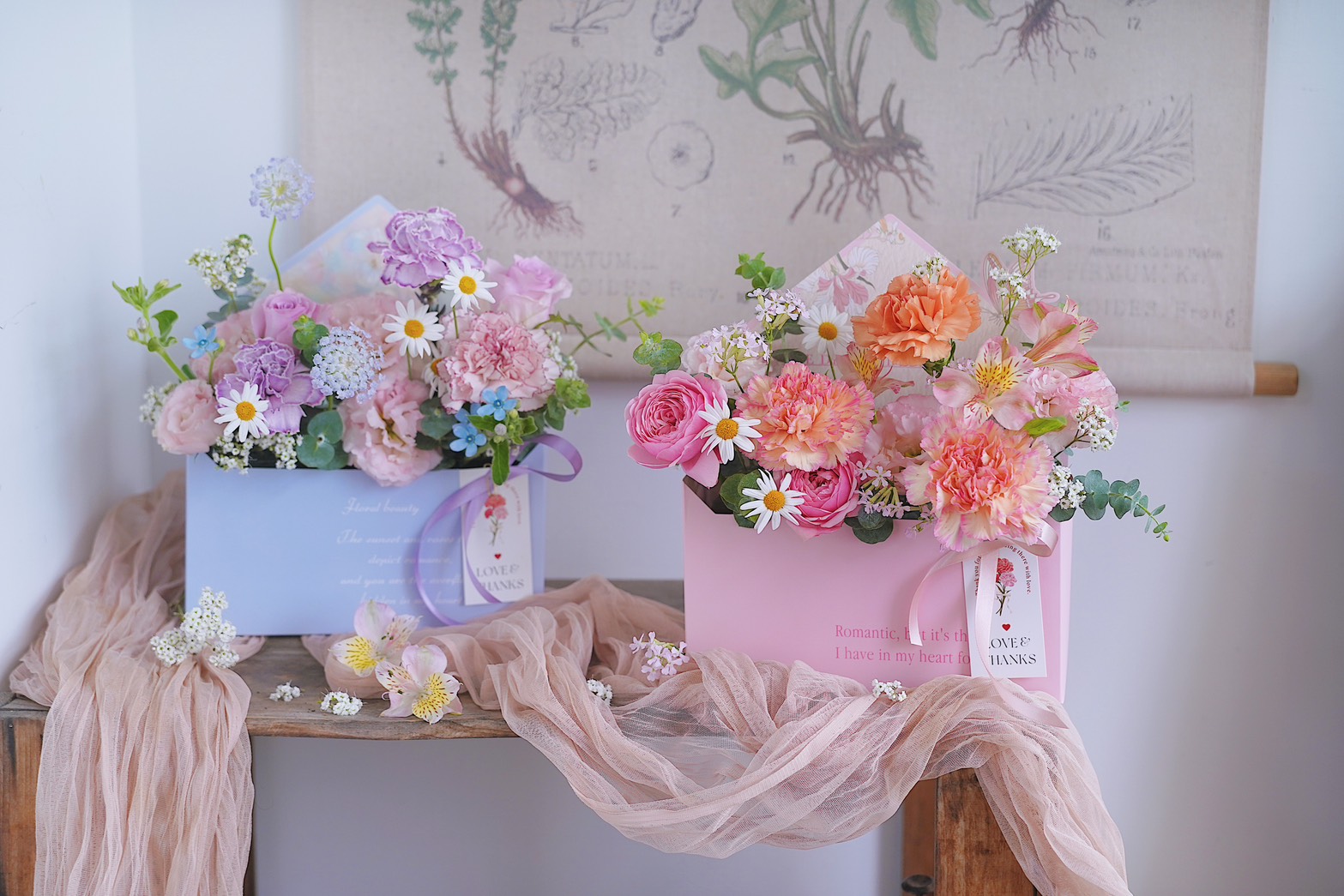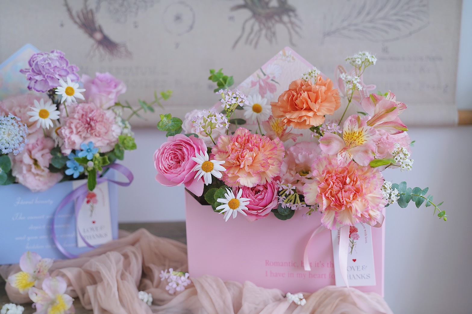 馨語|法式康乃馨信封花盒  - 花園紫 / 拾光粉